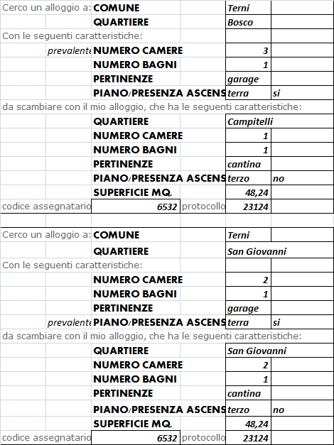 raccolti nell'elenco consultabile nella sezione "ANNUNCI PER CAMBIO CONSENSUALE ALLOGGI"